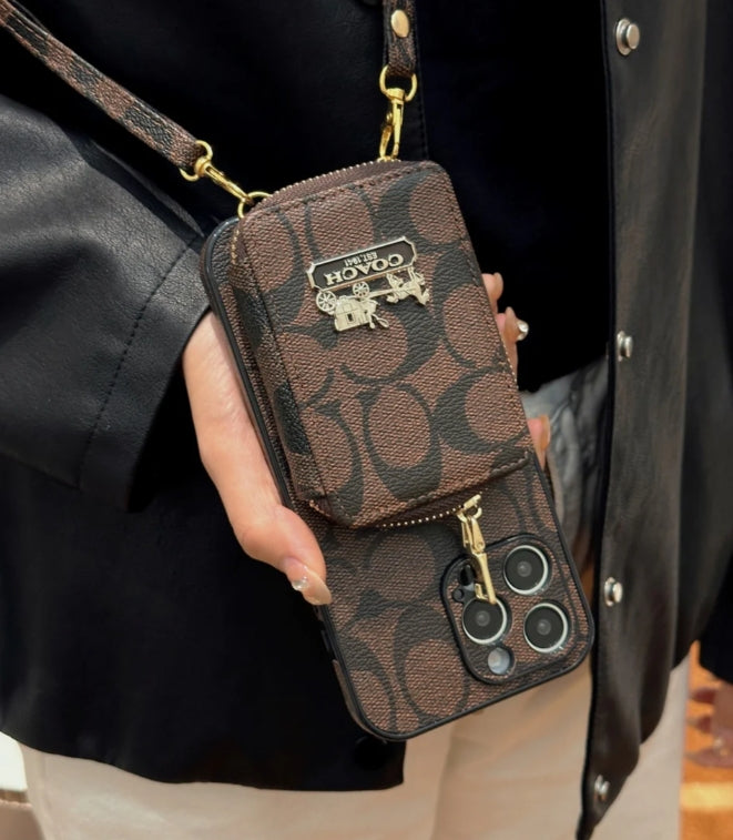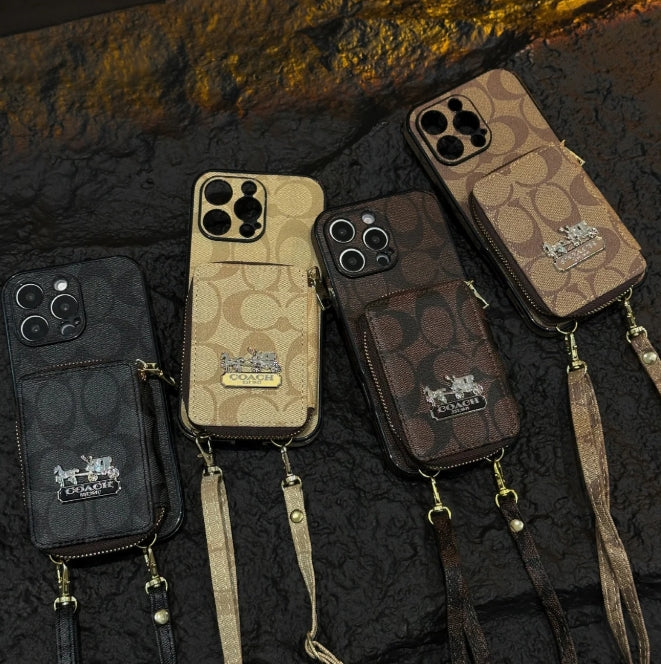 コーチ キャリッジ ロゴ レザー コインケース iPhone 用 ストラップ ケース