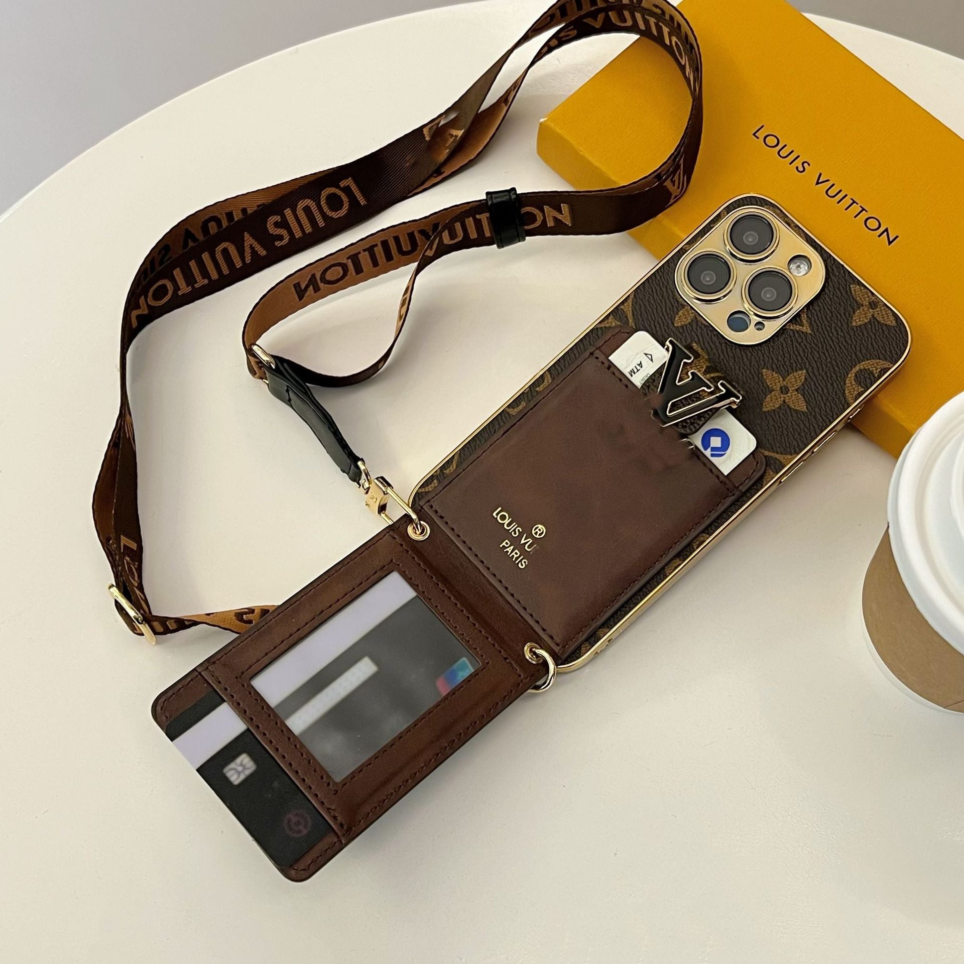 LV クラシック プリント レザー カード クロスボディ ケース iPhone 用