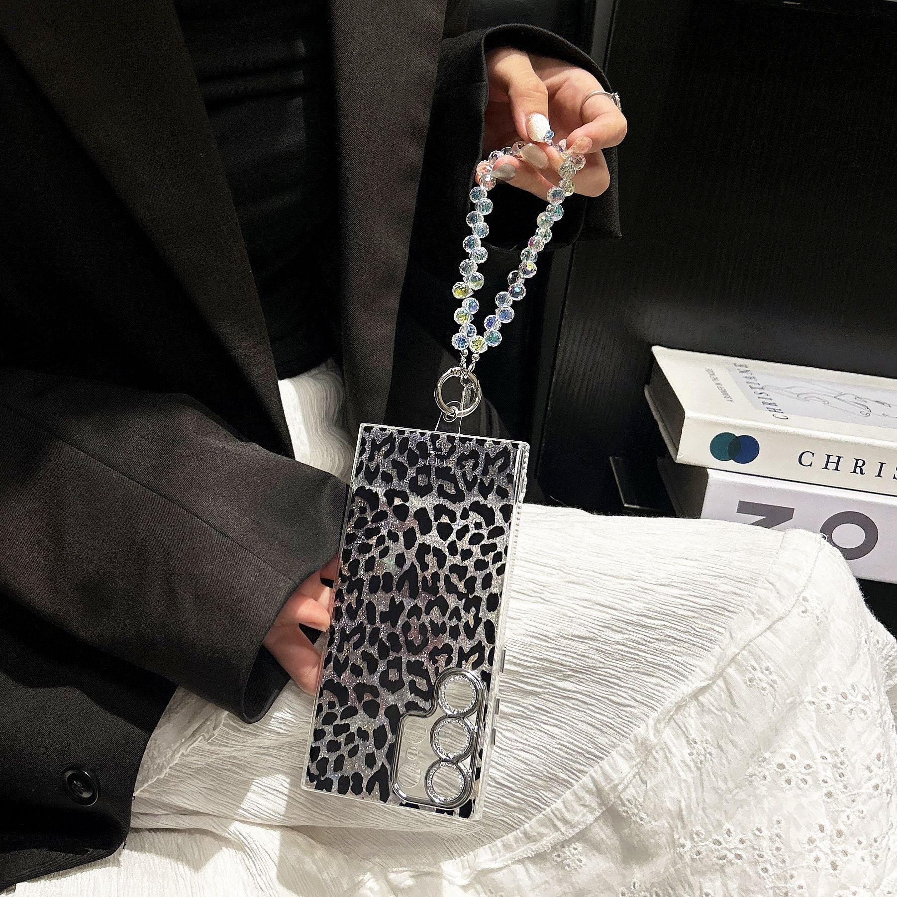 ダイヤモンド グリッター レーザー ヒョウ柄 リストチェーン 携帯電話ケース Samsung Galaxy S24/S23/S22 ultra用