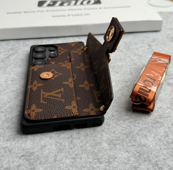 LVブランドレザーカードホルダースロットロックスリングカバーケースSamsung用