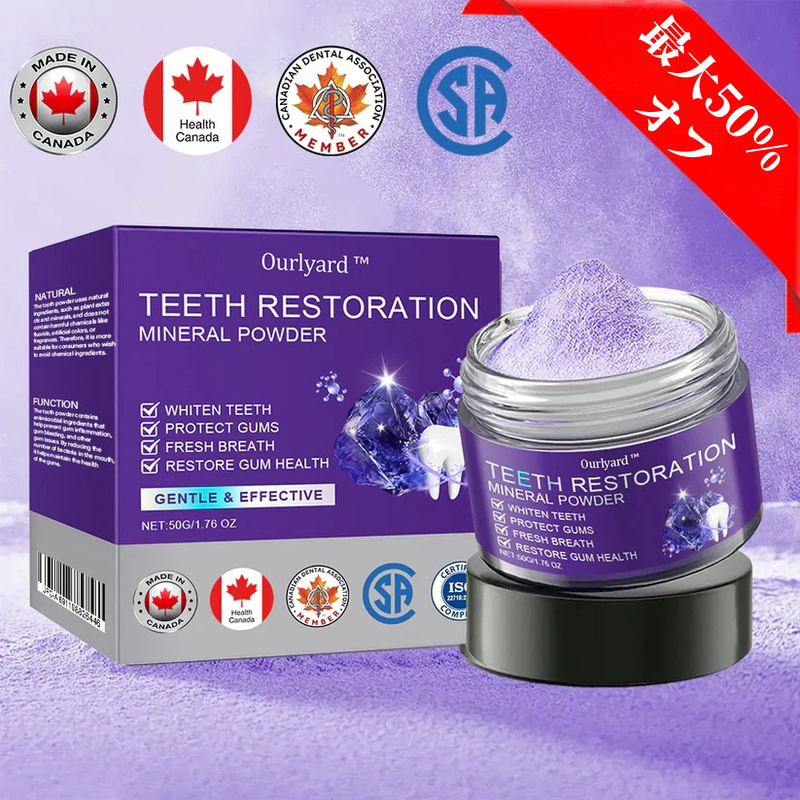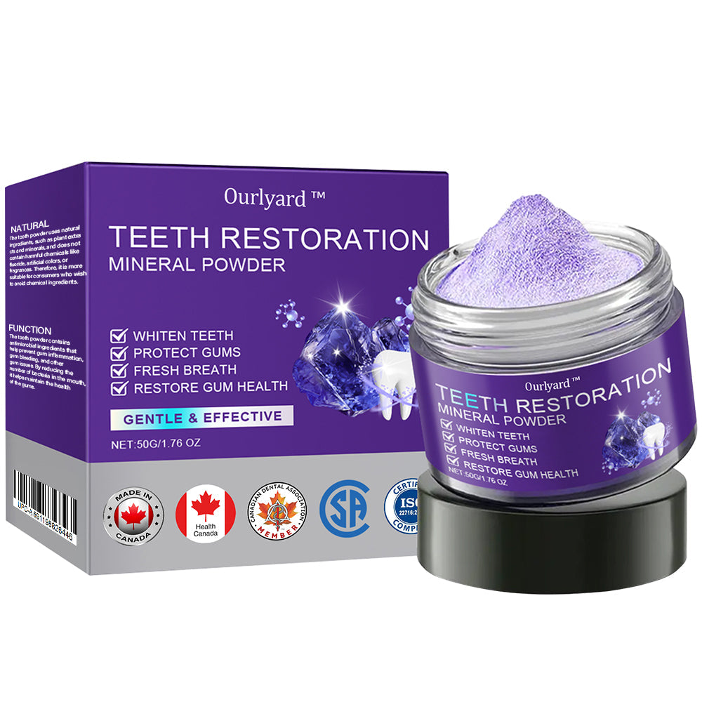 Ourlyard™ 歯修復ミネラルパウダーは、ブドウ種子や活性炭などの天然成分を配合しており、歯垢や頑固な歯石を効果的に除去します。歯の自然な健康と白さを回復します。